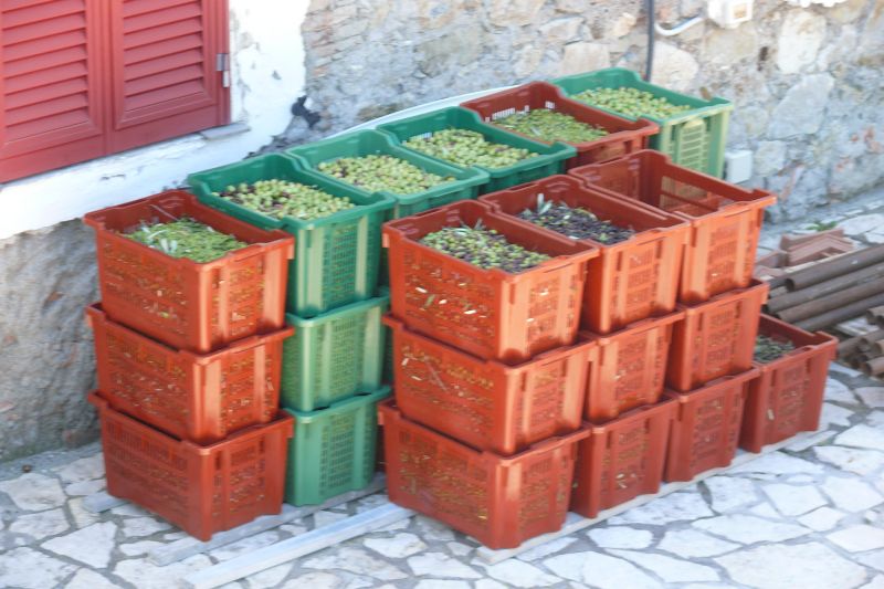 Elk najaar worden de olijven met de hand geoogst en naar de locale perserij gebracht (“frantoio“). Omdat de olijfgaard op natuurlijke wijze groeit en er geen bestrijdingsmiddelen worden gebruikt kan de oogst sterk verschillen van jaar tot jaar. Soms is er zelfs helemaal niets.